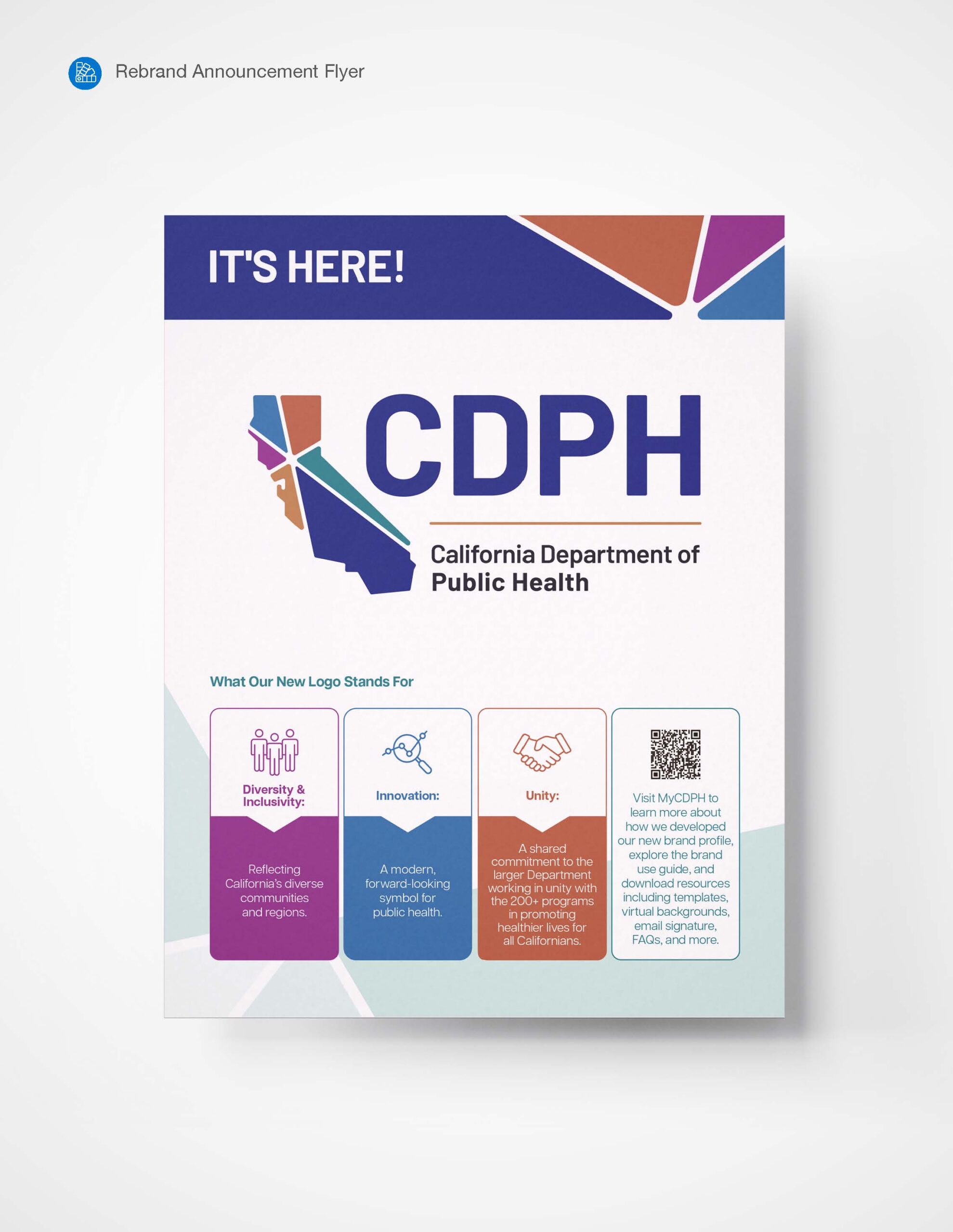 In 2023, the California Department of Public Health (CDPH)—one of the nation’s largest and most visible state health agencies—launched an initiative to modernize its brand and communications strategy. The goal was to create a more cohesive, inclusive, and future-ready brand that better reflects the diversity of California, reinforces CDPH’s leadership in public health, and aligns with National Public Health Accreditation standards. With 61 local health jurisdictions and a broad network of partners, CDPH sought to strengthen internal alignment, build public trust, and support consistent, audience-centered communication across all channels and communities.