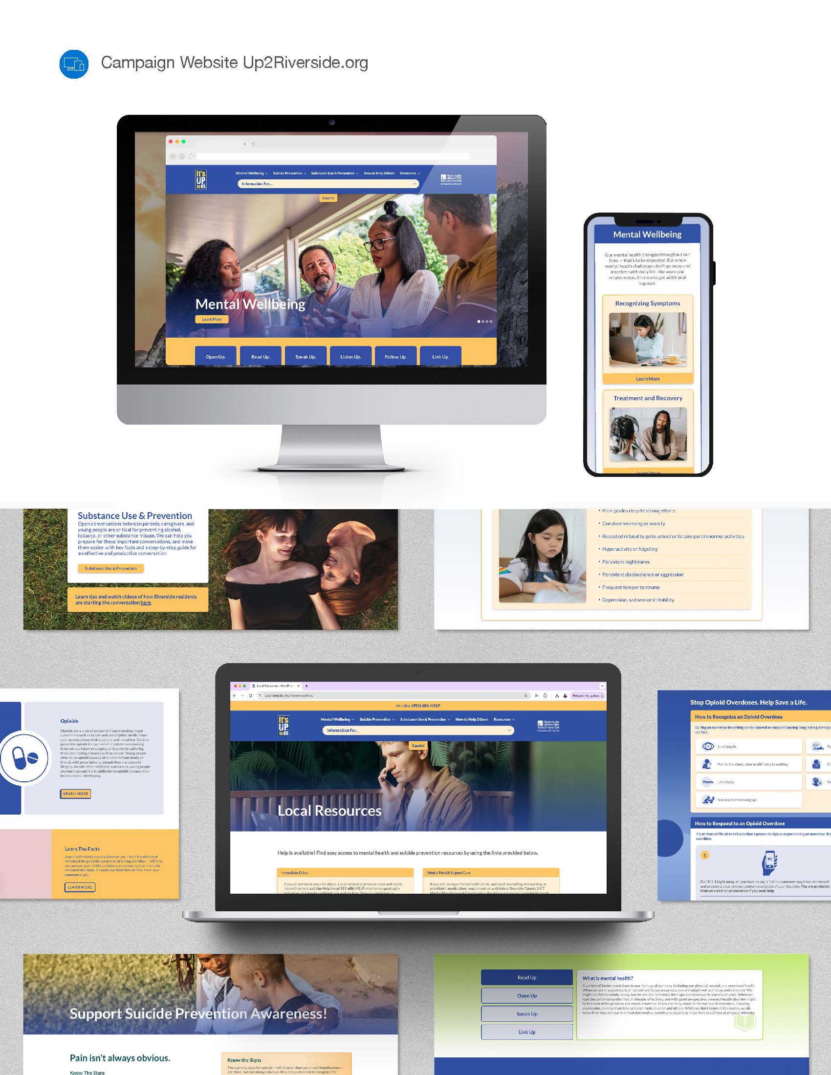 Civilian partnered with RUHS-BH to build a multi-phase prevention campaign anchored in the trusted It’s Up To Us platform. For SAPT, we designed family-centered messaging that moved beyond awareness into practical prevention, equipping parents and caregivers with evidence-based tools to discuss cannabis, opioids, alcohol, and fentanyl with youth. Through the campaign, we deployed a Family Resource Guide, youth microsite, and school-based pocket cards, complemented by collaborations with Directing Change and Your Social Marketer to integrate prevention resources directly into classrooms and peer networks.